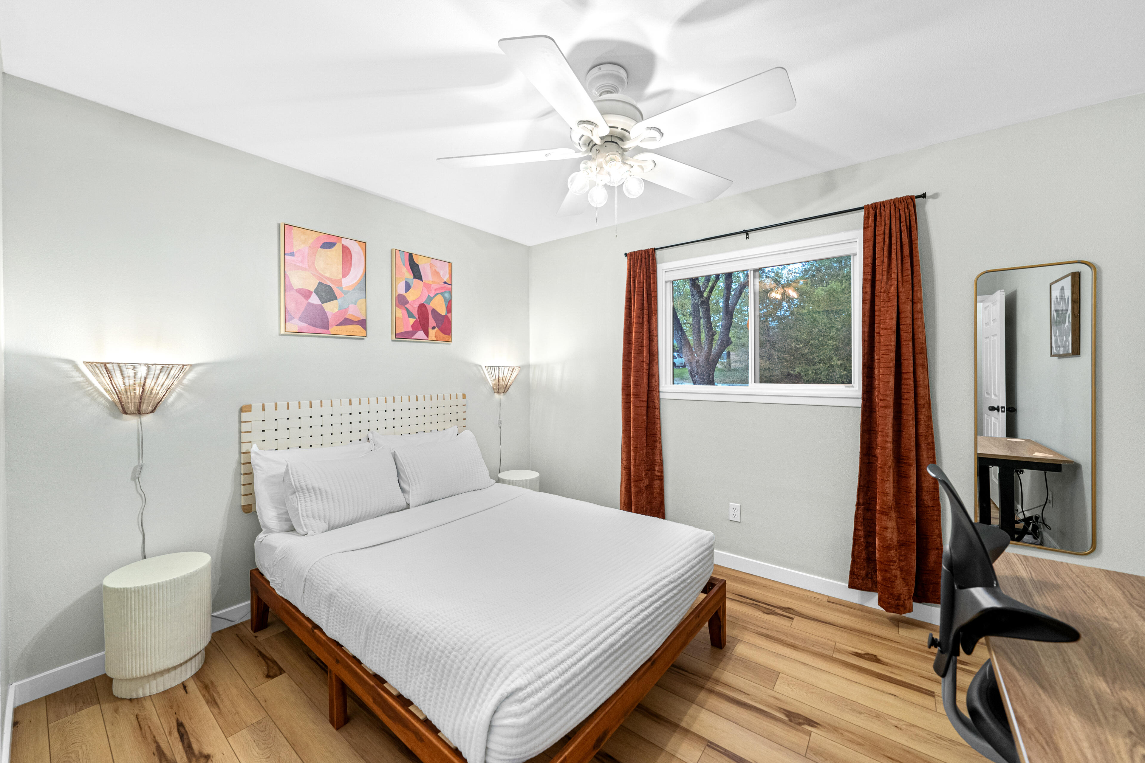 This bright bungalow sits on a quiet, tree-lined street in Windsor Park, giving you that genuine East Austin feel without the noise. Three restful bedrooms and an open-concept living area make this an ideal home base for small groups or families. Everything inside has been updated with clean finishes. Stay connected with fiber WiFi.You're less than a mile from Mueller — Austin's most loved neighborhood — minutes from the best farmers market in the city, restaurants, H-E-B, and walking trails.